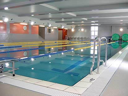底面をタイル貼りで仕上げ、側面を同色のフッ素塗装で仕上げており、すっきりとした一体感のある施設になっています。水深があるので、安全に飛び込み競技を行えます。また、2コース分はプールフロアーを設置して歩行用にお使い頂いています 。